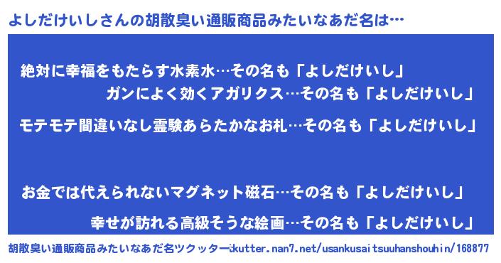 よしだけいしさんの胡散臭い通販商品みたいなあだ名をツクッター!