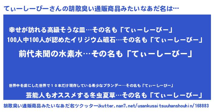 | 意味不明あだ名 | 『永久保存てぃーしーびー』 |