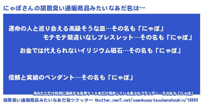 | ポケモン風あだ名 | 『ニックウザ』『ニャゴンZ』 |