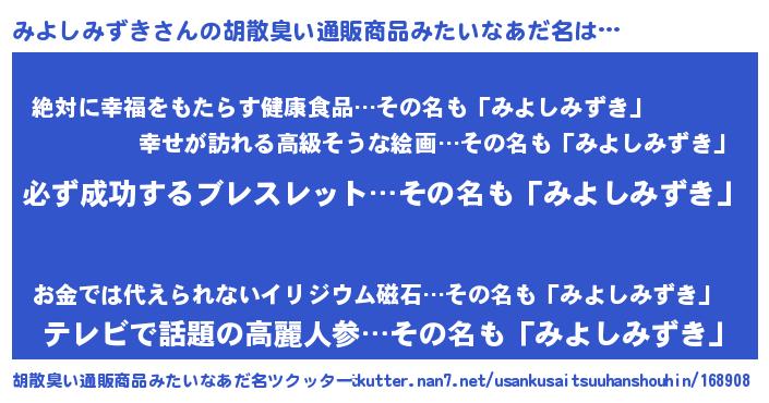 | 可愛いあだ名 | 『みんみん』『みよしみずきママ』 |