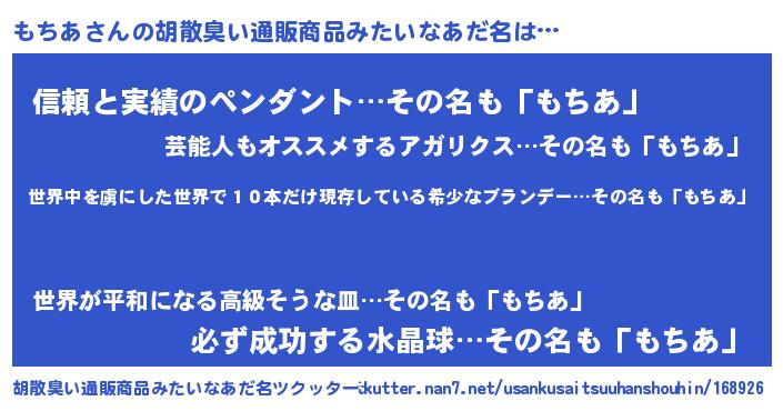 | 恥ずかしいあだ名 | 『モチリンリン』『プリティーもちあ』 |
