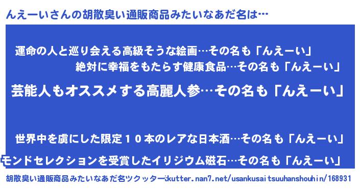 | 意味不明あだ名 | 『自称んえーい』『んえーいフォーエバー』 |