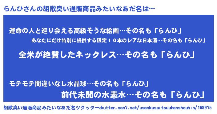 | 意味不明あだ名 | 『とにかく怪しいらんひ』 |
