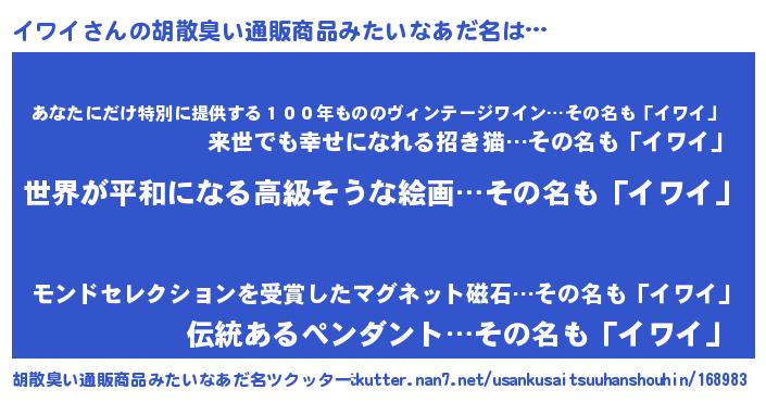 | 意味不明あだ名 | 『イワイフォーエバー』『ニラ科イワイ属』 |