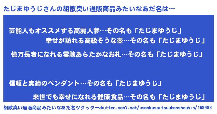 | ヘコむあだ名 | 『たじっふぃ~』『たじまゆうじ(笑)』 |