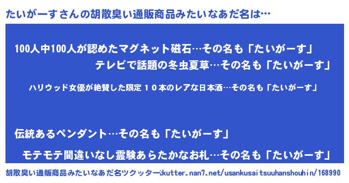 | 欧米人風あだ名 | 『ダレノガレたいがーす』 |