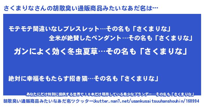 | 伝説のあだ名 | 『伝説のスナイパーさくまりな』 |