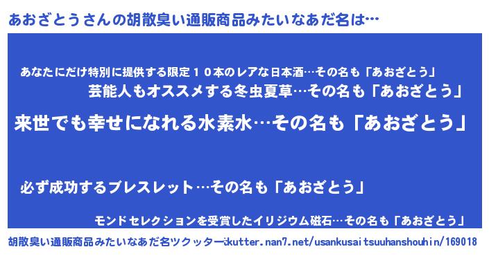 | ヘコむあだ名 | 『あおざとう(苦笑)』『あおにゅー』 |