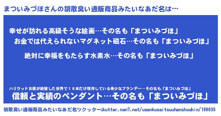 | 意味不明あだ名 | 『永久保存まついみづほ』 |
