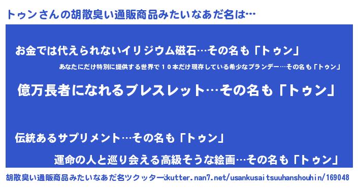 | ヒーロー風カッコイイあだ名 | 『スーパートゥン』『正義の使者トゥン』 |