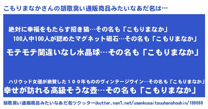| ヘコむあだ名 | 『こもふぇ~』『こもりまなか(笑)』 |