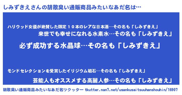 | 意味不明あだ名 | 『ペロリンしみずきえ』『自称しみずきえ』 |