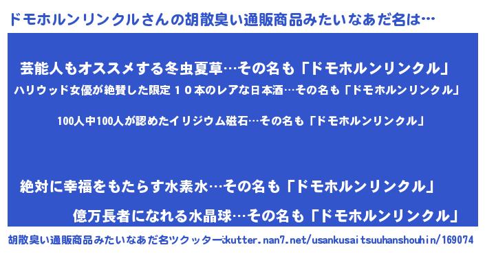 | 男性向けラノベタイトル風あだ名 | 『緋弾のドモホルンリンクル』 |