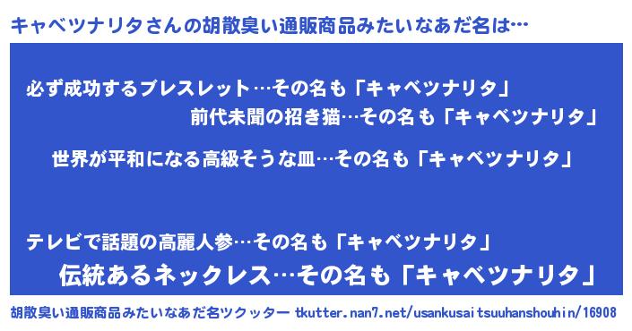 | ファンタジー風あだ名 | 『エターナルキャベツナリター』 |