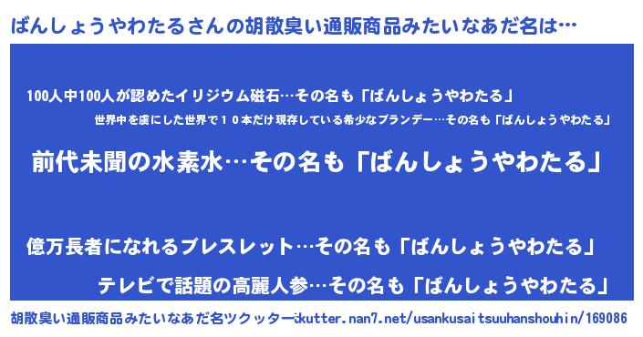 ばんしょうやわたるさんの胡散臭い通販商品みたいなあだ名をツクッター!