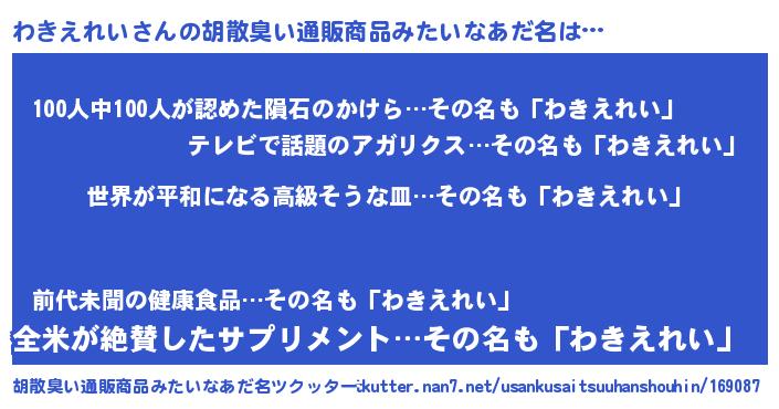 わきえれいさんの胡散臭い通販商品みたいなあだ名をツクッター!