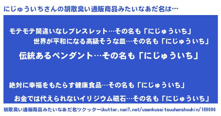 | ポケモン風あだ名 | 『ヒニジュウイチ』『ニジチュウ』 |