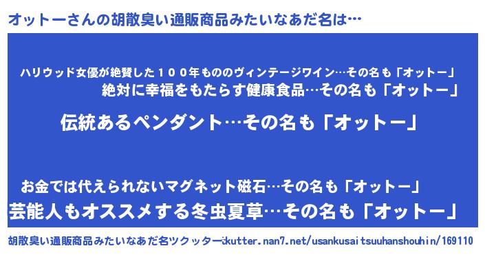 | ヘコむあだ名 | 『オッっちょ』『オットー(小並感)』 |