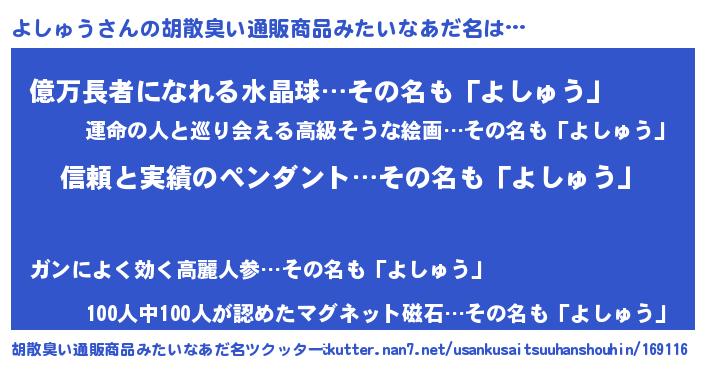 | 意味不明あだ名 | 『とにかく怪しいよしゅう』 |