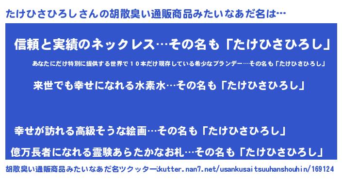 | 意味不明あだ名 | 『永久保存たけひさひろし』 |
