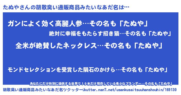 | 欧米人風あだ名 | 『ウサインたぬや』『トリンドルたぬや』 |