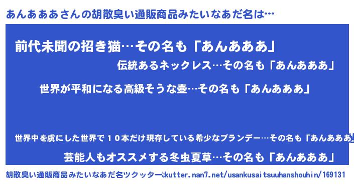 | 欧米人風あだ名 | 『アンジェラ・あんあああ』 |