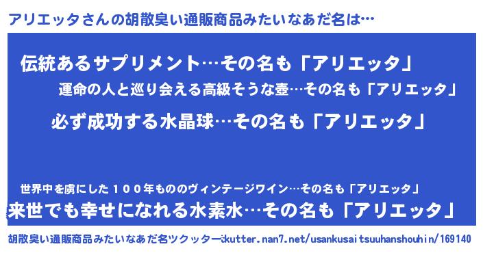 | ヒーロー風カッコイイあだ名 | 『スーパーアリエッタ』『幻影騎士アリ』 |