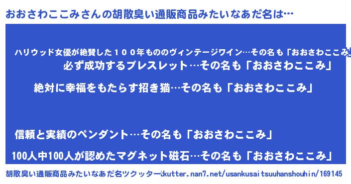 | 意味不明あだ名 | 『永久保存おおさわここみ』 |
