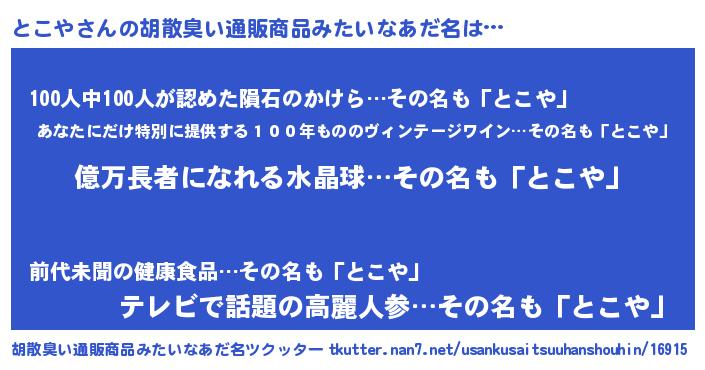 | ヘコむあだ名 | 『とこもー』『とこや(笑)』 |