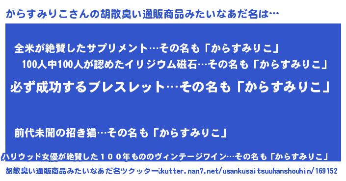 | 男性向けラノベタイトル風あだ名 | 『からすみりこの憂鬱』 |