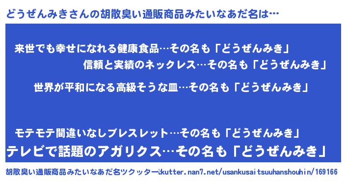 | 意味不明あだ名 | 『どうぜんみきフォーエバー』 |