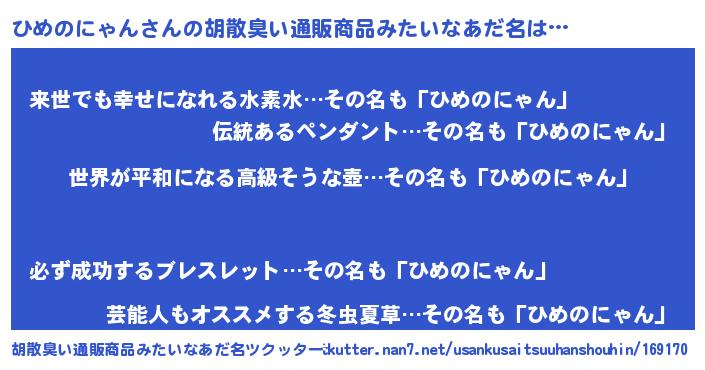 | ファンタジー風あだ名 | 『エターナルヒメノニャンー』 |