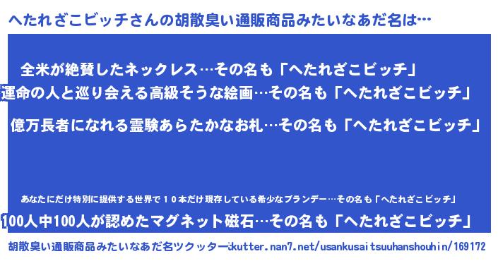 | 欧米人風あだ名 | 『トリンドルへたれざこビッチ』 |