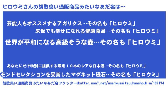 | ヘコむあだ名 | 『なまこ酢』『ヒロウミ(笑)』 |