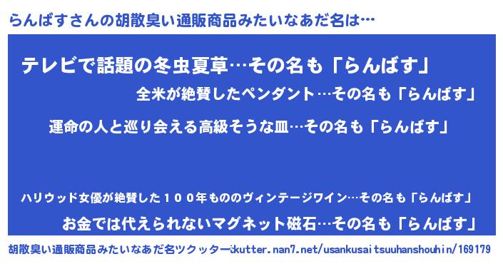 | 意味不明あだ名 | 『らんばすフォーエバー』『自称らんばす』 |