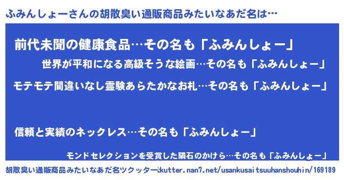 | 男性向けラノベタイトル風あだ名 | 『転生したらふみんしょーだった件』 |