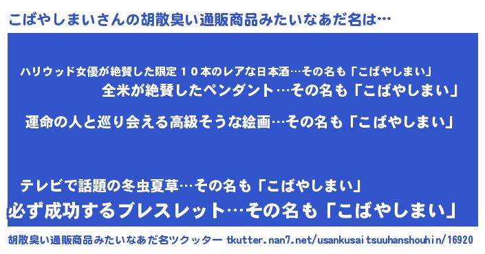 | ヘコむあだ名 | 『酢こんぶ』『こばにゅー』 |