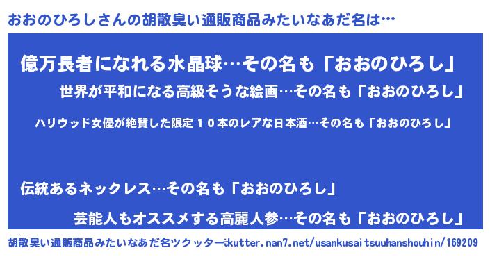 | 意味不明あだ名 | 『住所不定無職おおのひろし(62歳)』 |