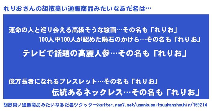 | 肩書あだ名 | 『れりお閣下』『れりお総理大臣』 |