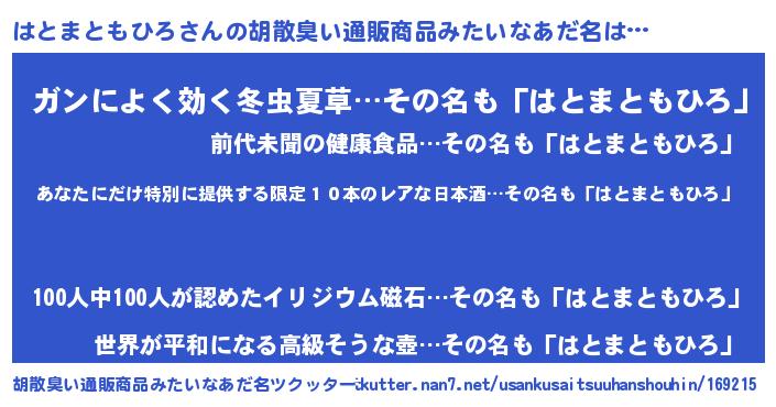 | 意味不明あだ名 | 『住所不定無職はとまともひろ(62歳)』 |