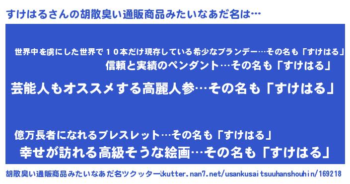 | 意味不明あだ名 | 『自称すけはる』『すけはるフォーエバー』 |