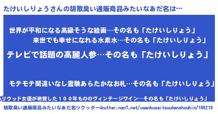 | ヘコむあだ名 | 『なまこ酢』『たけいしりょう(笑)』 |