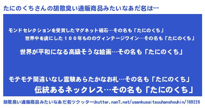 たにのくちさんの胡散臭い通販商品みたいなあだ名をツクッター!