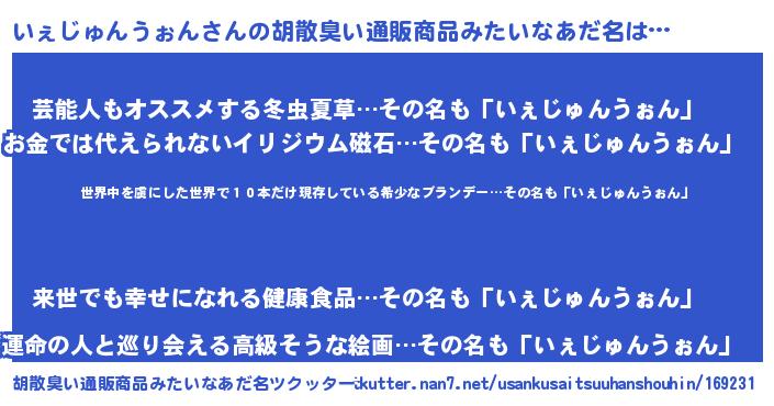 | 意味不明あだ名 | 『住所不定無職いぇじゅんうぉん(74歳)』 |