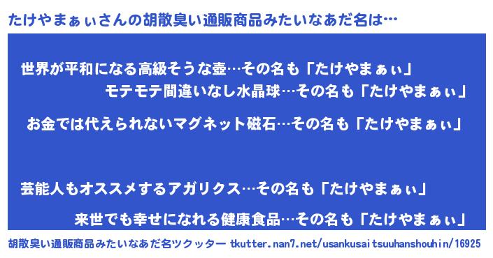 | ヒーロー風カッコイイあだ名 | 『愛の使者たけやまぁぃ』 |