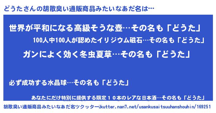 | 恥ずかしいあだ名 | 『ドウタデラックス』『どうっちょ』 |