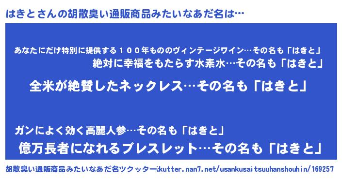 | 意味不明あだ名 | 『とにかく怪しいはきと』 |