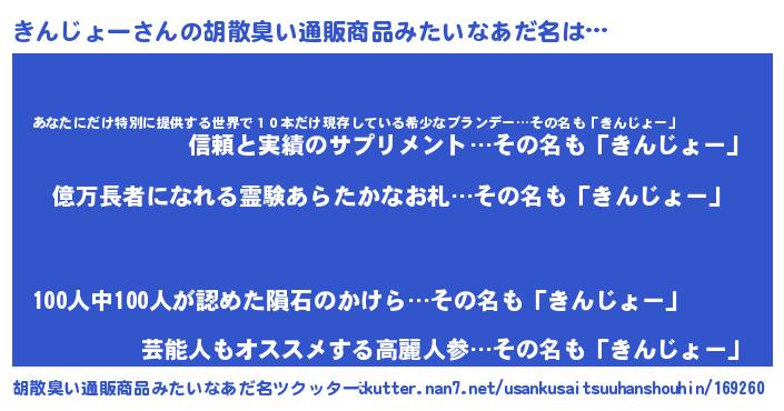 | 意味不明あだ名 | 『ニラ科きんじょー属』『自称きんじょー』 |