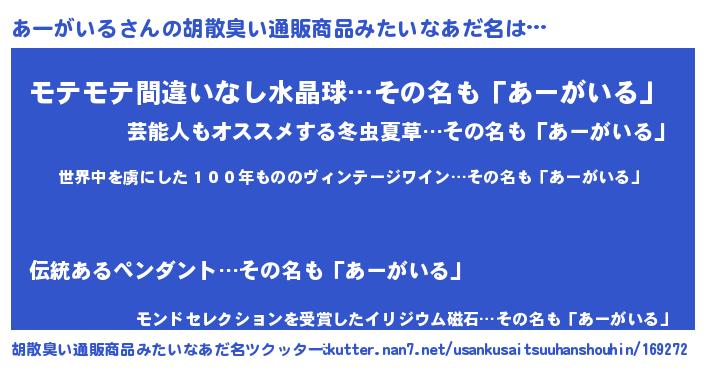 | 男性向けラノベタイトル風あだ名 | 『この素晴らしい世界にあーがいるを!』 |