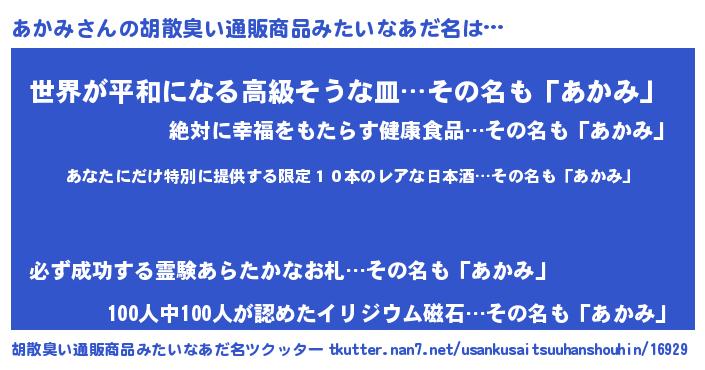 | 意味不明あだ名 | 『住所不定無職あかみ(43歳)』 |